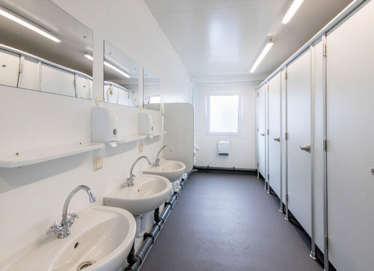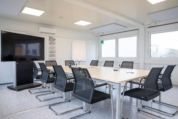 Um Ihren mobilen Bürokomplex bestmöglich zu nutzen, bieten wir Ihnen weitere Raumlösungen wie Baubürocontainer sowie Seminarräume, Aufenthaltsbereiche mit Küchenzeile und Sanitärräume an.