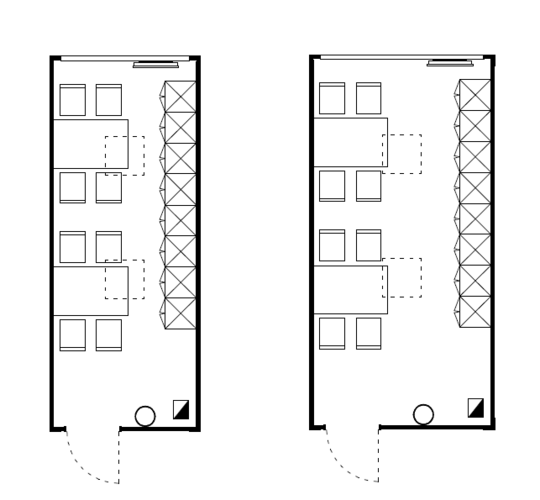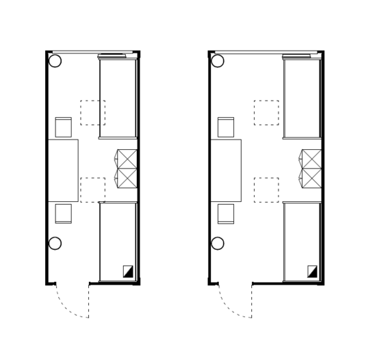Das flexible ELA Raumsystem ermöglicht verschiedene Raumaufteilungen für die Unterbringung einzelner Personen oder auch größerer Personengruppen. Bei der Anzahl der Personen pro Container ist die Arbeitsstättenverordnung zu beachten.