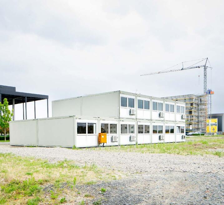 ELA Container errichtet vierstöckige Baustelleneinrichtung 540 Quadratmeter grosse Basis für Bauleitung in Prag Bau